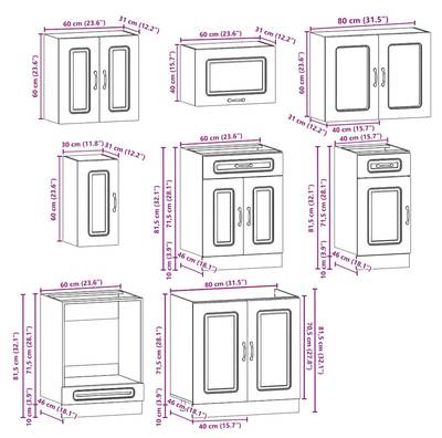 - 1 x Küchen-Hängeschrank mit Glastüren: 80 x 31 x 60 cm (B x T x H)