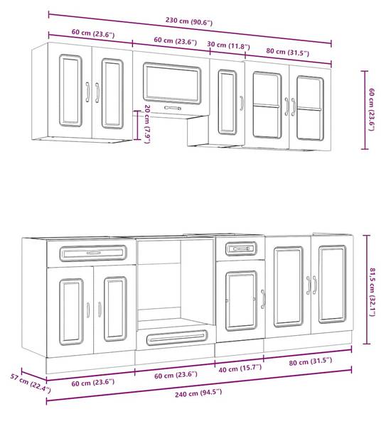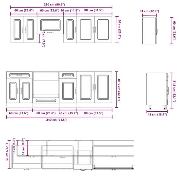 Mit ihrem eleganten Design optimiert diese 8-teilige Küchenzeile Ihre Küche und bietet reichlich Platz für Ihre Küchenausstattung!