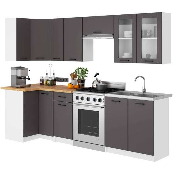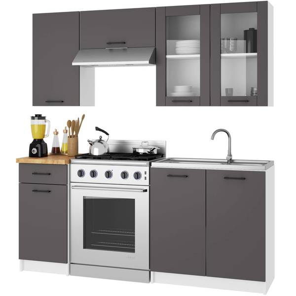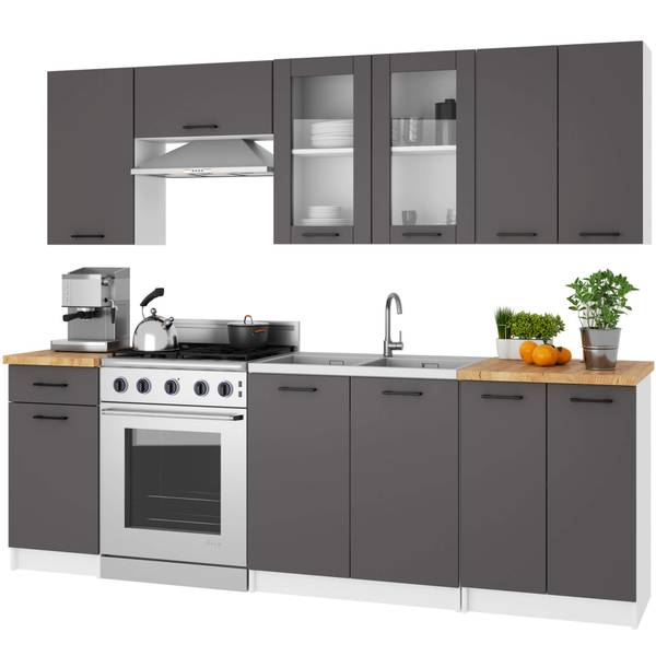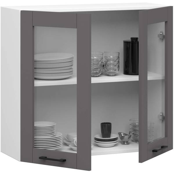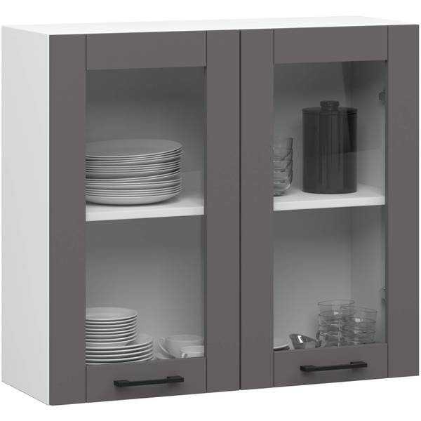 - Weitere Qualitätsmerkmale: MODERNE ELEGANZ - Die OLIWIA-Vitrine mit graphitgrauen Fronten und Glastüren verleiht Ihrer Küche einen zeitgemäßen und raffinierten Stil. PRAKTISCHER STAURAUM - Ausgestattet mit zwei Regalböden bietet diese Vitrine Platz für Ihre Küchenutensilien und erleichtert den Zugriff. PERFEKTE INTEGRATION - Dieser Hängeschrank lässt sich einfach montieren und passt sowohl zu modernen als auch klassischen Einrichtungsstilen. HOCHWERTIGE MATERIALIEN - Hergestellt aus strapazierfähigem laminiertem Spanplattenmaterial, ist die Vitrine ideal für den aktiven Küchenalltag. KOMPAKTE ABMESSUNGEN - Mit einer Breite von 80 cm, Höhe von 72 cm und Tiefe von 30,5 cm optimiert sie den Raum ohne zu überladen.