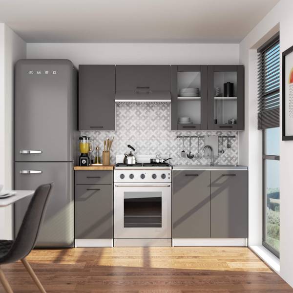 MODERNE ELEGANZ - Die OLIWIA-Vitrine mit graphitgrauen Fronten und Glastüren verleiht Ihrer Küche einen zeitgemäßen und raffinierten Stil.