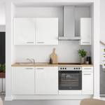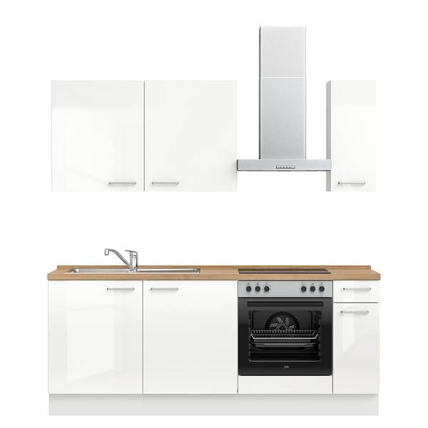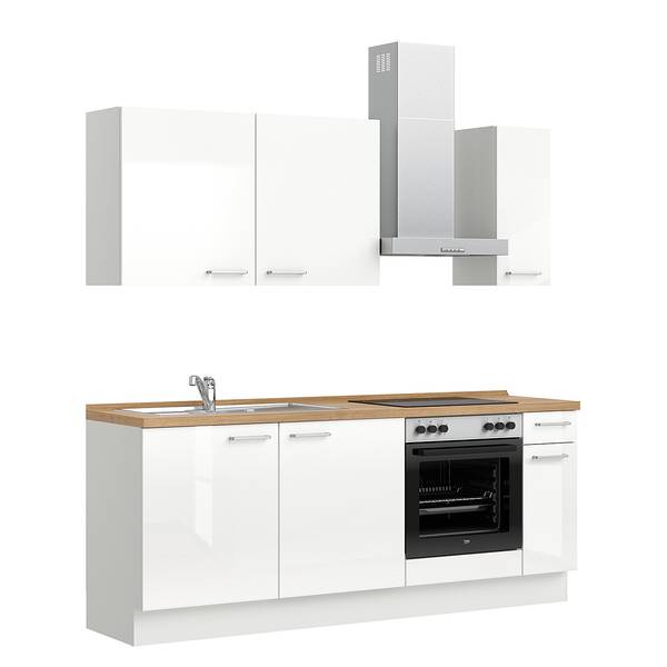 Hochglanz Weiß - Breite: 210 cm - Ausrichtung rechts - Mit Elektrogeräten
