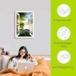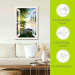 Motiv: Fensterblick Angelsteg am Fluss, weiß