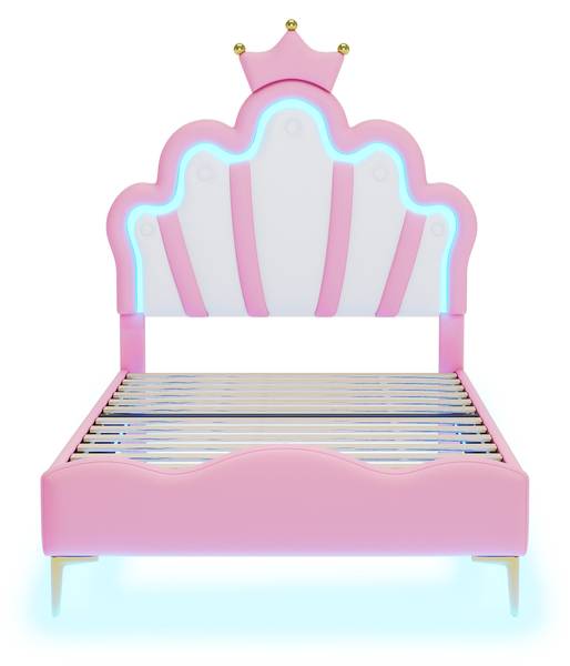 Dieses Bett ist mit einfachen Linien für einen eleganten, modernen Stil gestaltet. Das Kopfteil ist der Form einer Wolke nachempfunden und wird von einer Krone mit goldenen Perlen gekrönt. Die weiche Rückenlehne aus Kunstleder sorgt für zusätzlichen Komfort und Entspannung. Perfekt, um ein traumhaftes Schlafzimmerambiente zu schaffen, das Eleganz und Königtum ausstrahlt.