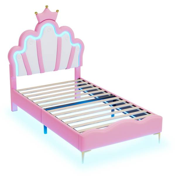 🌺Am Kopfteil und unter dem Bett befinden sich farbwechselnde LED-Lichtleisten, über die 24-Tasten-Fernbedienung sind 4 Wechselmodi und statische Moduseinstellungen sowie Helligkeit und Geschwindigkeit steuerbar.