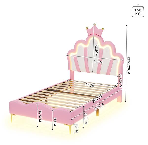 🌺Die Höhe des Kopfteils ist von 123–129 cm verstellbar, sodass das Bett für Matratzen von 15–25 cm geeignet ist