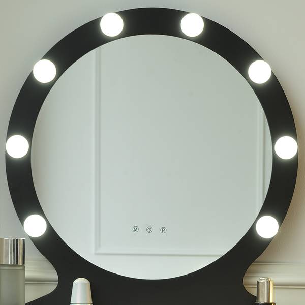Mit seiner atemberaubenden schwarzen Farbe und hochwertigen Materialien bietet dieser Schminktisch ein charmantes und stilvolles Ambiente. Der Tisch besteht aus lackiertem MDF-Holz, das eine glatte und ansprechende Oberfläche bietet. Mit seinen zwei Schubladen, bietet der Tisch ausreichend Stauraum für deine Schminkutensilien, Accessoires und persönlichen Gegenstände. Der Schminktisch verfügt über einen großzügigen Spiegel, der mit dimmbaren LED-Lampen ausgestattet ist. Du hast die Möglichkeit, das Licht warmweiß, kaltweiß und neutralweiß einzustellen. Zusätzlich wird der Schminktisch mit einem Hocker geliefert, der mit einem weichen Sitzkissen in passendem Schwarz versehen ist. Der Hocker bietet dir Komfort und unterstützt eine ergonomische Sitzhaltung während Deiner Schönheitsroutine.