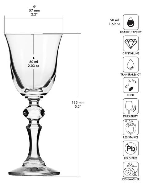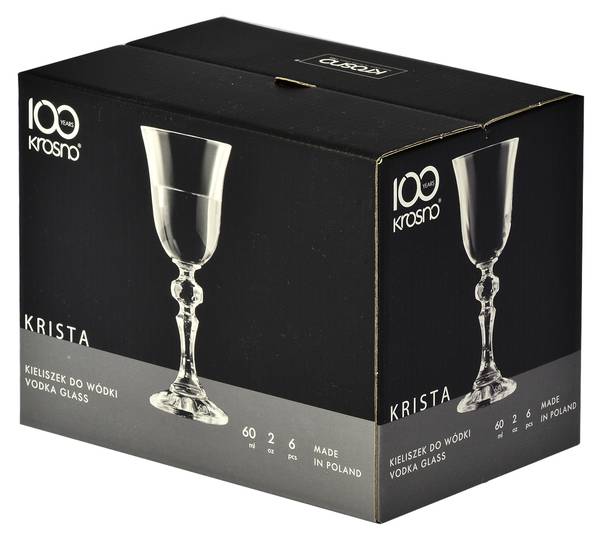 Elegante Wodkagläser auf hohem Stiel 60 ml – Die Wodkagläser auf hohem Stiel 60 ml aus der KRISTA-Kollektion von Krosno Glass sind ein Muss für jede Hausbar, die besondere Anlässe feiert. Das transparente Crystalline-Glas verteilt das Licht schön und ist resistent gegen Mattierung, sodass die Gläser jahrelang wie neu aussehen – und zusätzlich können sie bedenkenlos in der Spülmaschine gereinigt werden.