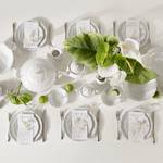 Die weiße Version der Kollektion besticht durch ihre Schlichtheit und Vielseitigkeit und fügt sich perfekt in eine Vielzahl von Tischarrangements ein. Darüber hinaus können die weißen Teile in der Spülmaschine gereinigt und bedenkenlos in der Mikrowelle verwendet werden, was sie nicht nur elegant, sondern auch äußerst praktisch macht.