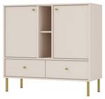 Zusätzlich sorgen elegante goldene Griffe für das gewisse Etwas und unterstreichen die Hochwertigkeit der Kollektion. Die Verwendung von robusten, laminierten Platten garantiert eine hohe Langlebigkeit und ein modernes Finish.