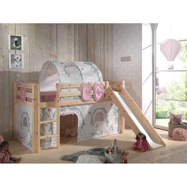 - Lieferumfang: Spielbett Pino inkl. Rutsche mit Textilset Vorhang, Tunnel und 3 Taschen "Birdy"