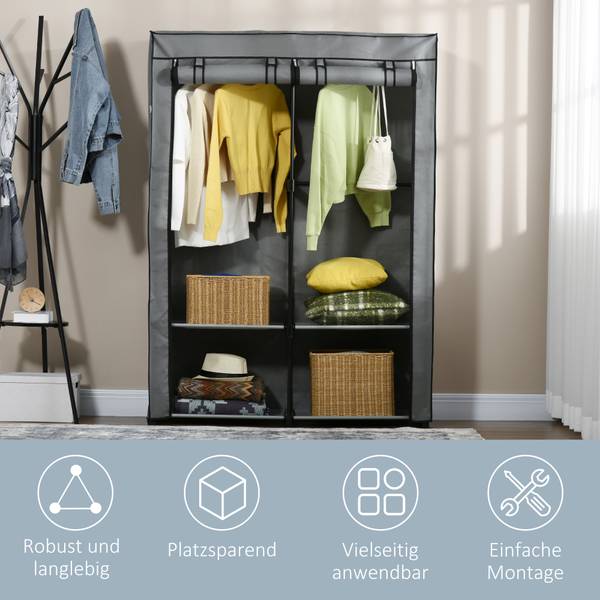● Enthält 2 Kleiderstangen und 4 Einlegeböden zum Ordnen der Kleidung