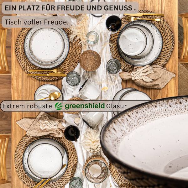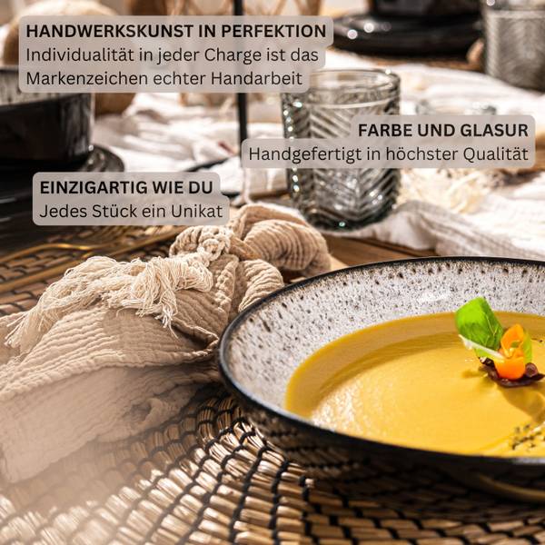 Entdecken Sie die Schönheit der Handwerkskunst in jedem Stück. Durch die handgefertigte Herstellung erhält jedes Teil eine einzigartige Note, die Ihren Tisch in ein Kunstwerk verwandelt. Erleben Sie die perfekte Kombination aus Ästhetik und Funktionalität - für unvergessliche kulinarische Erlebnisse, Tag für Tag.