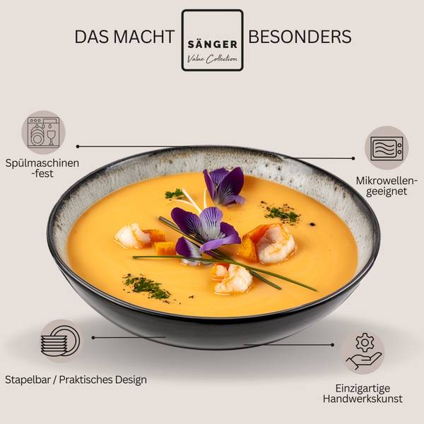 6x Suppenteller - ØxH: 20 cm x 5 cm – Füllmenge: 700 ml