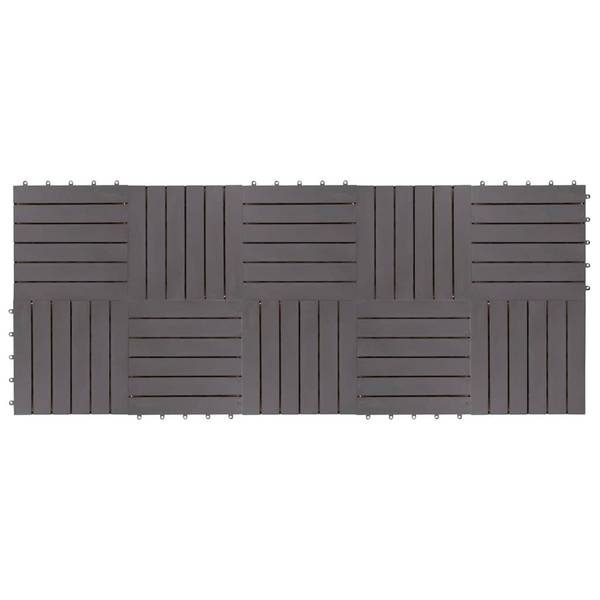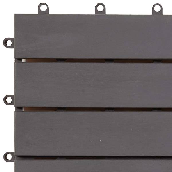Im Lieferumfang sind 10 Holzterrassenfliesen enthalten.