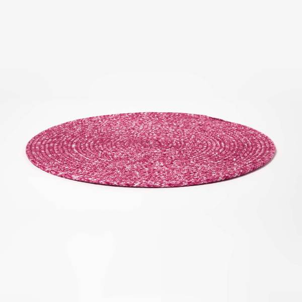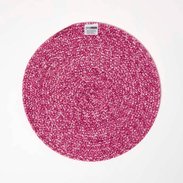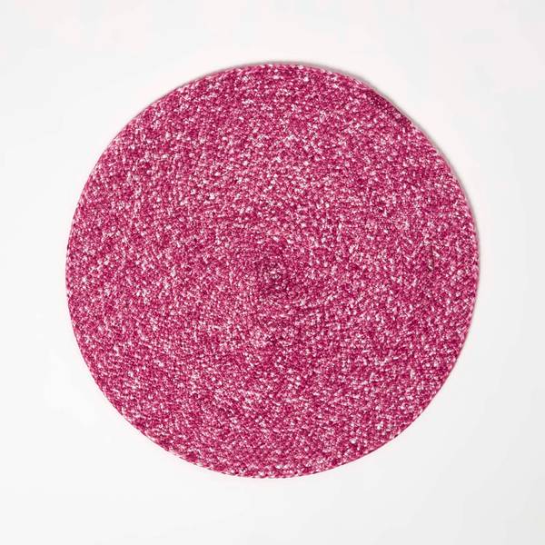 Stilvoll geflochtenes rundes Tischset im praktischen 4er-Set in frischem, heiterem Pink. Jedes nachhaltig aus recyceltem Polyestergarn gefertigte Platzset ist etwa 40 cm groß.