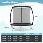 Das Sicherheitsdesign umfasst gebogene Stangen und eine spaltlose Netzbefestigung zur Verletzungsvermeidung. Die gebogenen Beinrohre erhöhen die Stabilität, während die Schwerlastfedern und der rostbeständige, galvanisierte Stahlrahmen eine dauerhafte Qualität gewährleisten. Sie werden einen hohen Sprung auf der rutschfesten Sprungmatte mit reißfestem Sicherheitsnetz genießen. Die Leiter bietet einen einfachen Zugang und die gepolsterte Federabdeckung erhöht den Komfort und die Sicherheit Ihres Springerlebnisses.