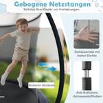 Dieses Gartentrampolin verfügt über ein Sicherheitsdesign mit gebogenen Stangen, die mit Anti-Kollisions-Schaumhüllen umwickelt sind. Zudem verhindert das spaltlose Design, das Netz sicher an der Matte zu befestigen, dass Hände und Füße eingeklemmt werden können.