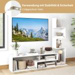Der TV-Schrank ist für Fernseher bis zu 50 Zoll konzipiert und das perfekte Herzstück für Ihr Zuhause. Er verfügt über eine Vielzahl von Fächern, um Ihre Mediengeräte übersichtlich und leicht zugänglich aufzubewahren. Darüber hinaus verleihen 2 L-förmige Ablageflächen Ihrem Entertainment-Setup Funktionalität und Stil. Noch wichtiger ist, dass die Kippsicherung den TV-Ständer an der Wand befestigt, das Kipprisiko verringert und für zusätzliche Stabilität sorgt. Zusammengefasst verbindet dieser TV-Schrank Ästhetik mit Funktionalität und bietet eine zuverlässige und schicke Plattform für Ihre Fernseh- und Mediengeräte.