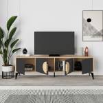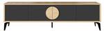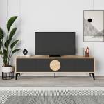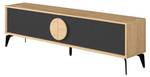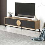 Produkteigenschaften: Struktur aus 18 mm melaminbeschichteten Spanplatten in Eichenfarbe / Türen aus 18 mm melaminbeschichteten Spanplatten in Anthrazitschwarz. Runde Griffe aus melaminbeschichteten Spanplatten in Eichenfarbe. Metallgestell. Das Detail des runden Eichengriffs, inspiriert von Asien, verleiht Ihrem Interieur eine elegante Note und schafft eine beruhigende und raffinierte Atmosphäre. Diese Möbel sind so konzipiert, dass sie harmonisch in verschiedene Einrichtungsstile passen und Ihrem Raum eine einzigartige Note verleihen. Produktmaße: Länge 180 cm x Breite 35 cm x Höhe 51 cm - Nettogewicht: 33,3 kg. Verpackungsmaße: Paket Nr. 1: Länge 192,5 cm x Breite 40,9 cm x Höhe 15,5 cm - Bruttogewicht: 36,7 kg.