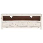 Mit 3 Schubladen und 1 Fach versehen, bietet der TV-Ständer reichlich Platz, um Multimedia-Geräte, Spielkonsolen oder sogar Bücher, Zeitschriften und verschiedene Kleinigkeiten aufzubewahren. Aus massivem Akazienholz mit weißer Beschichtung gefertigt, versprüht dieses TV-Möbel einen modernen Look. Werten Sie also Ihre Inneneinrichtung mit diesem modernen TV-Schrank auf!