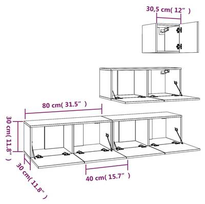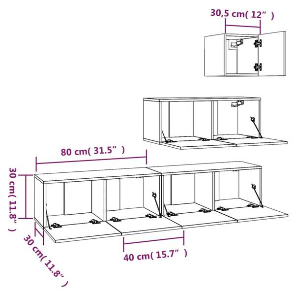 - Unterer TV-Schrank (jeweils): 80 x 30 x 30 cm (B x T x H)