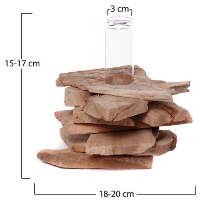 Abmessungen (ca.): 19x16 cm (ØxH). Es handelt sich um Einzelstücke, daher können die Maße teilweise abweichen. Lieferumfang: 1 Holz Vase mit Reagenzglas.