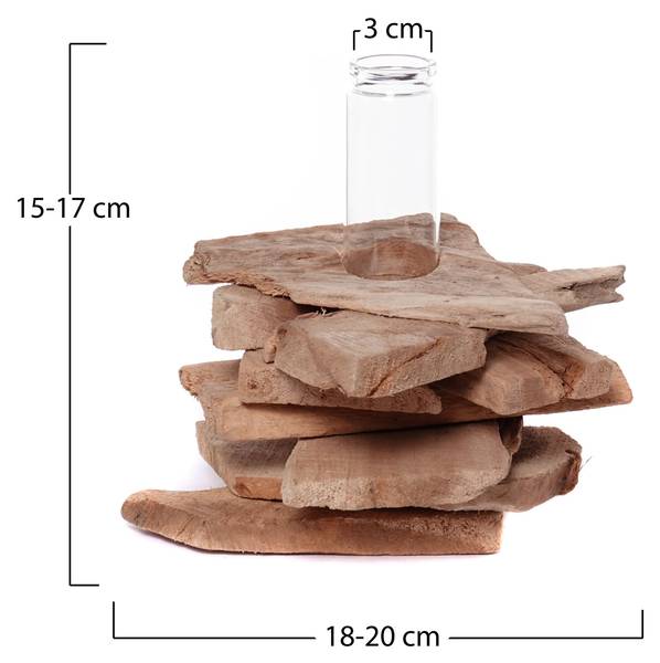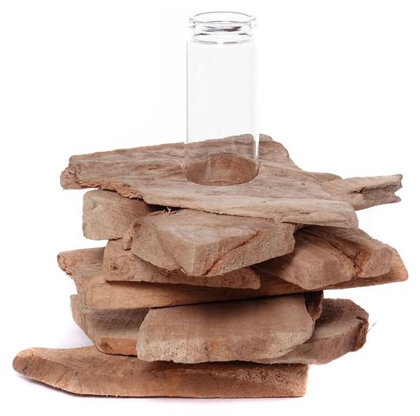 Die Treibholz Vase ist ein ideales Deko-Objekt, um frische Schnittblumen, getrocknete Kunstblumen und Dekogräser einzigartig zu präsentieren. Die Glas-Holz Kombination ist ein hervorragender Blickfang für jeden Tisch, auf jeder Kommode und Regal. Auch für besondere Anlässe, wie Hochzeiten oder Geburtstage, ist die Vase eine tolle Dekoration.