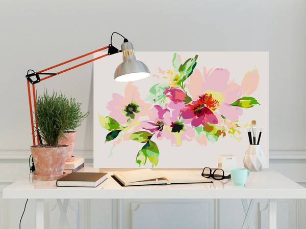 - Lieferumfang: 1 Leinwandbild zum Selbstausmalen, 1 Farbset, 2 Pinsel, 1 Motivbild, 1 Anleitung